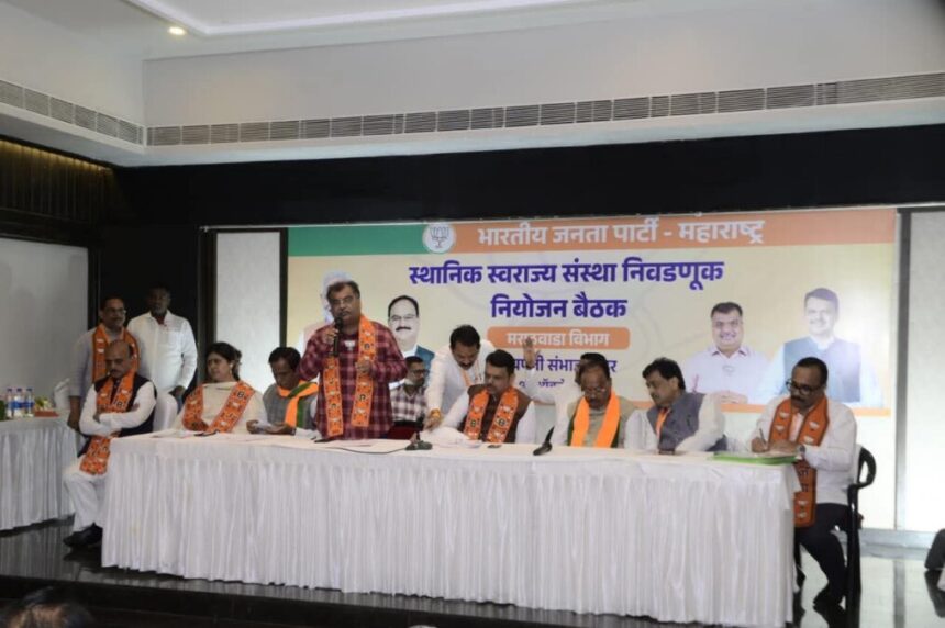मराठवाडा विभागातील स्थानिक स्वराज्य संस्थांच्या आगामी निवडणुकांच्या पार्श्वभूमीवर छत्रपती संभाजीनगर येथे मुख्यमंत्री देवेंद्र फडणवीस यांच्या प्रमुख उपस्थितीत भाजपा मराठवाडा विभागीय नियोजन आढावा बैठक पार पडली. भाजपच्या मराठवाडा विभागीय बैठकीत ते बोलत होते.