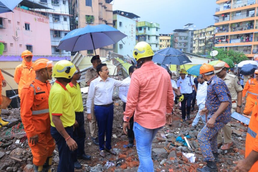 त्यांनी मृतांच्या कुटुंबीयांना भेटून सांत्वन केले तसेच जखमी नागरिकांना रुग्णालयात भेट देऊन त्यांची विचारपूस केली. दुर्घटनेनंतर महापालिका, अग्निशमन दल, NDRF आणि पोलिसांनी संयुक्तपणे युद्धपातळीवर बचावकार्य सुरू केले. शेजारील चाळींना धोका असल्याने नागरिकांना स्थलांतरित करून तात्पुरत्या निवाऱ्याची सोय करण्यात आली आहे. इमारतीच्या बांधकामास जबाबदार असलेल्या जमीन मालक व विकासकाविरोधात गुन्हा दाखल करण्यात आला असून आरोपीस अटक झाली आहे. जखमींच्या उपचाराचा संपूर्ण खर्च महापालिकेने उचलावा, अशा सूचना मंत्री महाजन यांनी दिल्या. या वेळी खासदार डॉ. हेमंत सवरा, आमदार स्नेहा दुबे, आमदार राजन नाईक, महापालिका आयुक्त मनोज सूर्यवंशी तसेच वरिष्ठ अधिकारी उपस्थित होते.